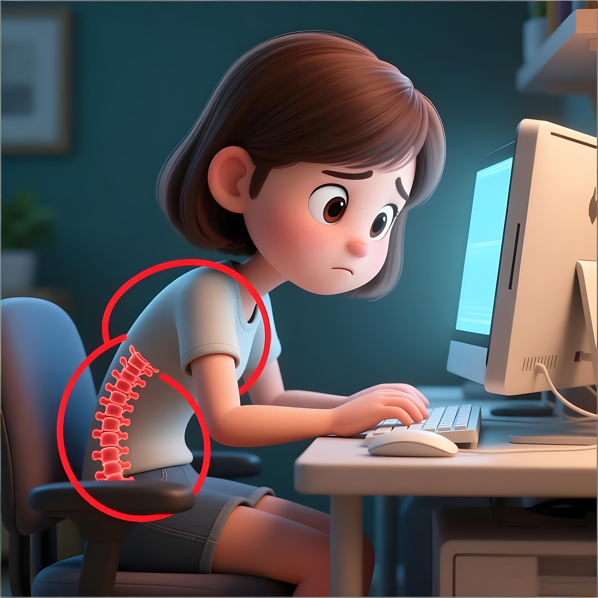 众所周知,坐姿时,上半身重量集中在腰椎,尤其是第4、5节腰椎和骶椎区域。当身体前倾(如看电脑)时,压力进一步增加,可能达到站立时的2.5倍,导致椎间盘外层纤维环磨损,引发膨出或突出。