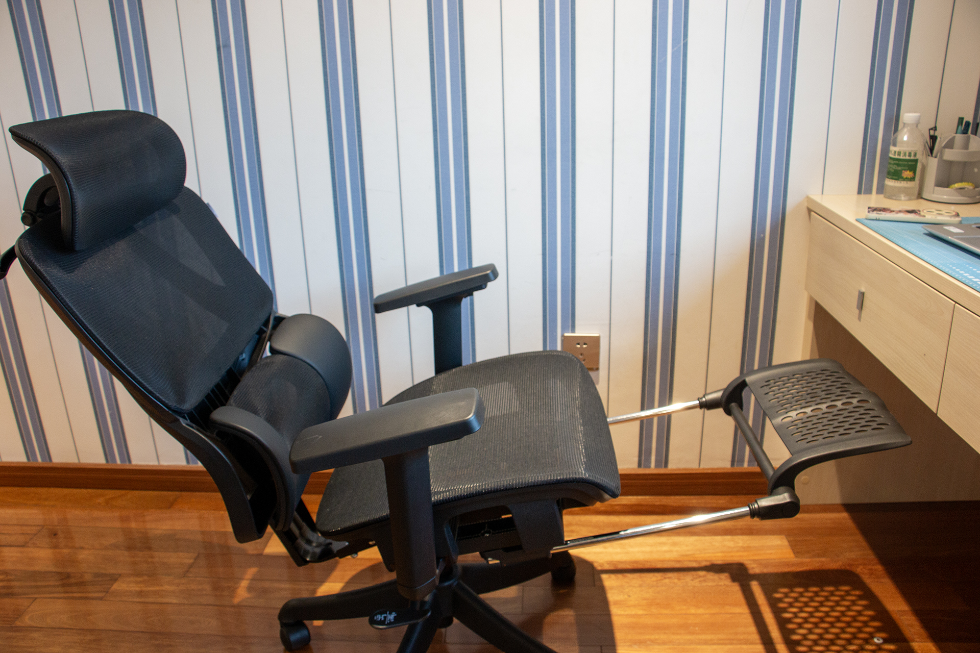 夏草木FIT2设计有隐藏式可伸缩腿托,配合腰托从而做到从护腰到护腿的全面呵护,配合145度的后仰大仰角,无论普通办公还是中午小憩,都能为自己找到一个惬意的坐姿让自己感到舒适。
