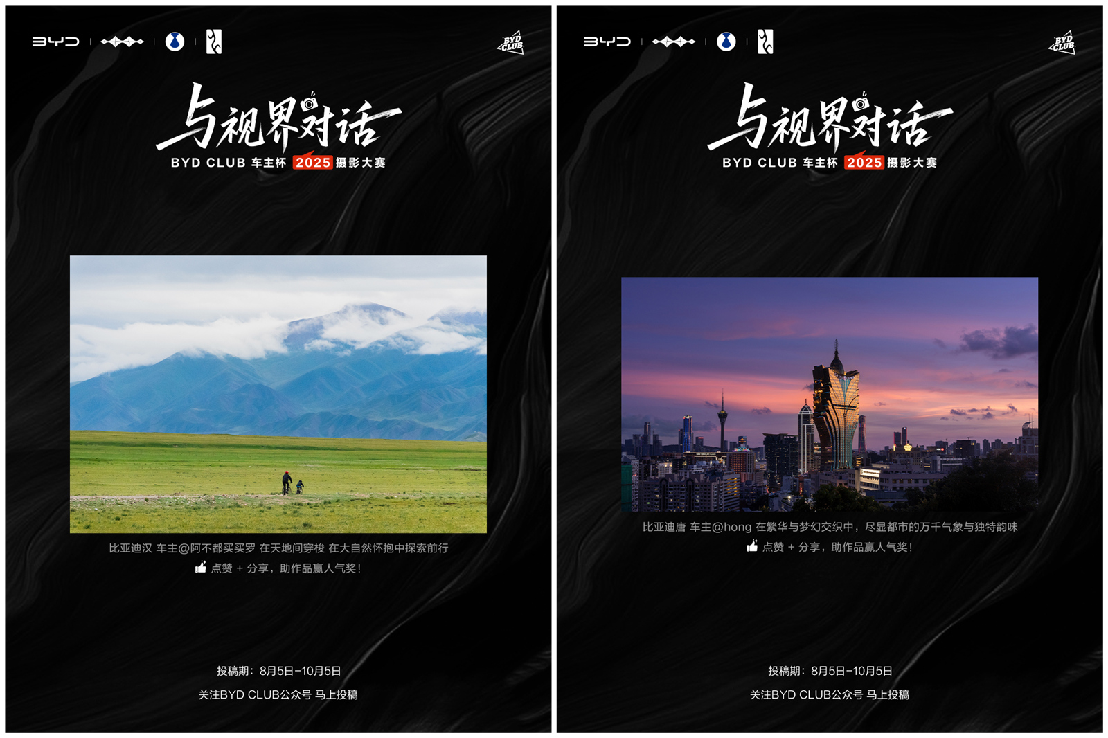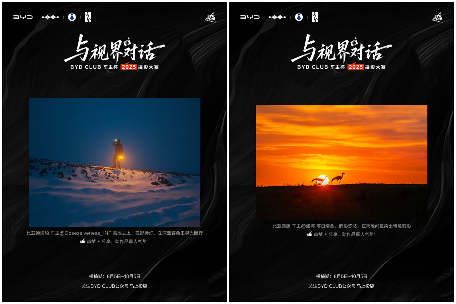 光影为笔,视界为纸,每一张照片都是生活写给世界的诗。BYD CLUB车主杯·2025摄影大赛自开启以来,已汇聚万千车主与摄影爱好者的真挚表达。