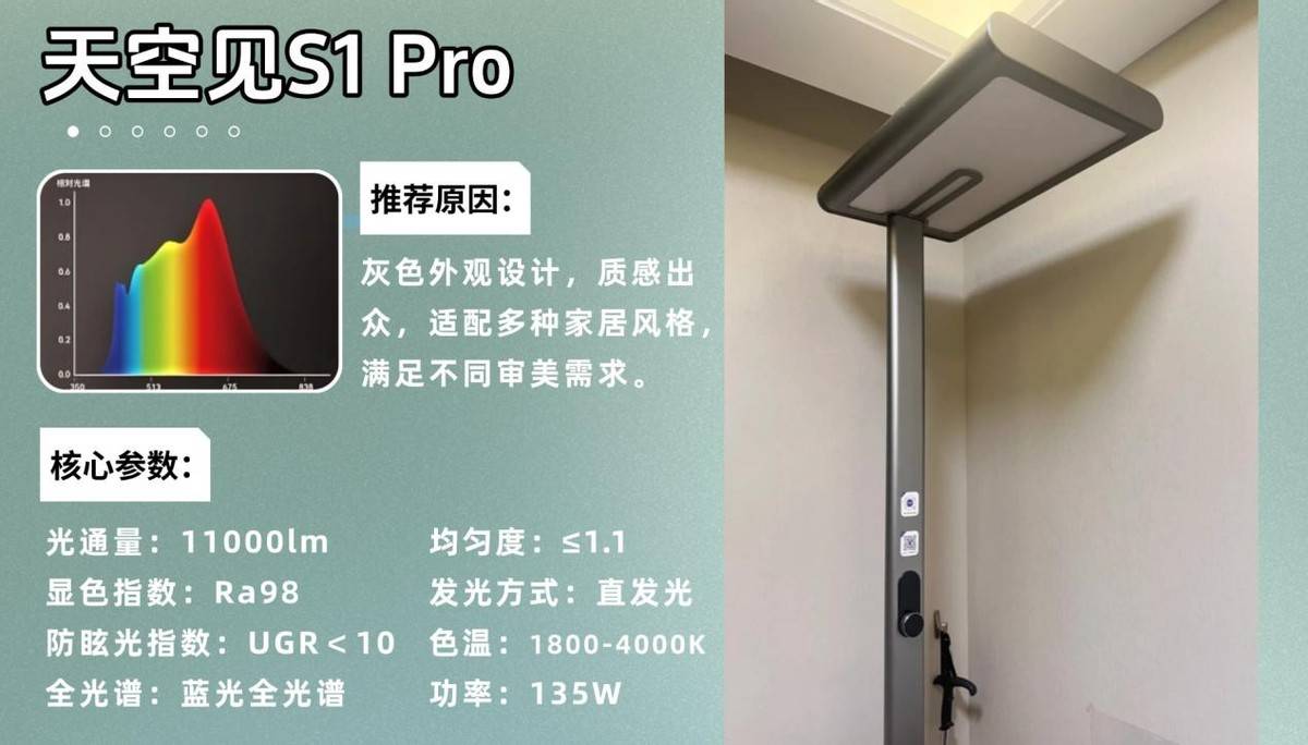 护眼落地灯品牌排行前十名有哪些?UNDER SKY天空见S1 Pro护眼大路灯新增了灰色外观,整体看起来比较有质感,适配多样家居风格。它配置四个灯光调节模式,方便应对多种使用场景,采用触控调节灯光,操作比较便捷。在核心性能参数上,总光通量为11000lm,其中上发光达到了7000lm,在房间中起到了良好的补光作用。