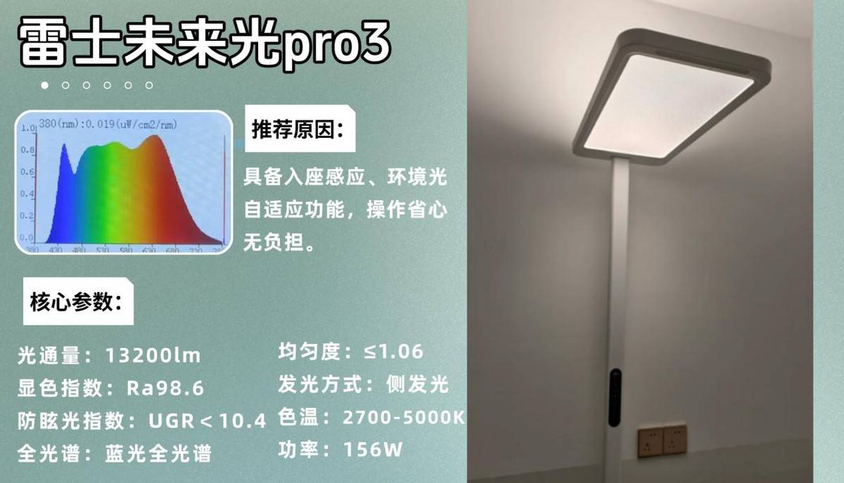 护眼落地灯品牌排行前十名有哪些?雷士未来光pro3护眼大路灯搭载156W大功率与进口普瑞全光谱光源,总光通量达13200lm,可轻松覆盖大空间,提供均匀柔和的照明环境。不过光通量太高,在近距离使用时可能需要适当调低亮度以避免光线过强影响舒适度。
