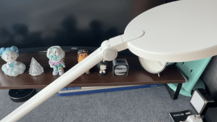 拆箱时就被它的颜值戳中——奶白色灯体搭配磨砂质感,双转轴灯头像机械臂一样灵活,360°旋转毫无压力,结果发现灯头居然能稳稳悬停在任意角度,低年级读绘本、高年级刷题都能精准投光。