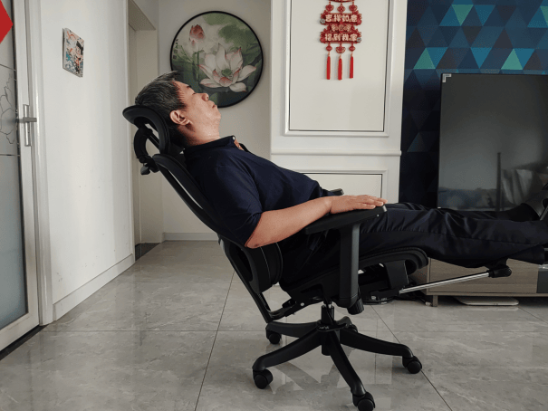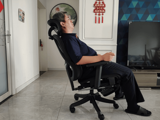 夏草木 Fit2 人体工学椅采用第六代重力联动底盘,在久坐舒适体验方面的又一重要设计。它将新颖的机械传导技术融合进富有肌肉感的安全底盘中,能够根据使用者的体重自动调节后仰反馈力度。对于体重较轻的人来说,使用这把椅子时,只需轻轻一靠,就能轻松实现后仰,享受舒适的休息姿势;而对于体重较重的人,起身时也不会感觉到吃力,底盘能够提供恰到好处的助力,让起身变得更加轻松。这种智能调节的设计,使得不同体重的人都能在这把椅子上找到最舒适的坐姿,大大提升了椅子的通用性和舒适性。而且,底盘的后仰角度非常大,最大可达 145°,配合隐藏式可伸缩腿托,让你在午休或放松时能够尽情舒展身体,享受惬意的时光。