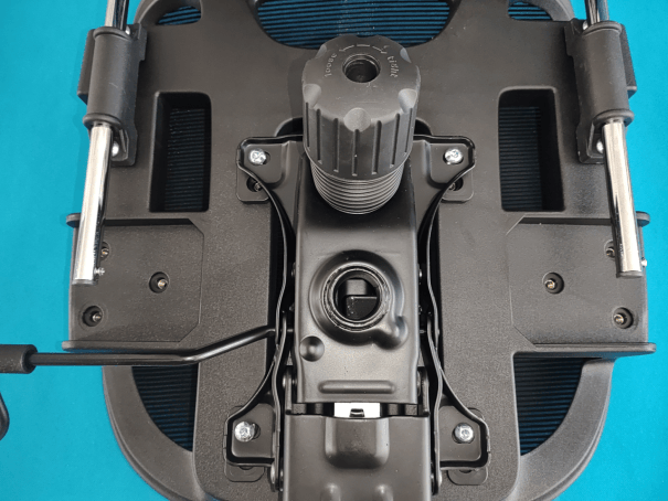 夏草木 Fit2 人体工学椅使用了通过国际认证的气压杆,负荷测试的载重达到了200到250公斤,升降35万次无损,正常人可以使用5到10年的时间。具有三挡的升降和360°旋转的功能,而且操作非常顺滑。升降功能通过坐垫下方的调节把手完成,调节方式为上抬操作,下压固定,力度较轻使用非常方便。