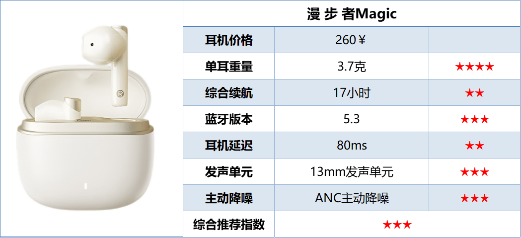 单只耳机仅重 3.8 克,轻巧机身长时间佩戴耳部压力小,耳道特征大数据及人体工学仿真分析,打造出贴合多数耳型的入耳式设计,耳机的轻盈感还是可圈可点的。