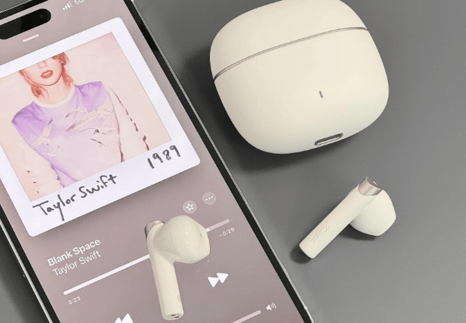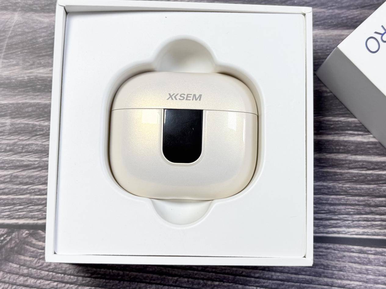 这款耳机整体走的是简约圆润风格,耳机和充电盒都没有明显棱角,摸起来光滑顺手,外壳采用的是ABS材质,手感不错,单耳只有约 4g 重,戴着很轻盈,几乎没什么压迫感,适合长时间佩戴。不过稳固性方面一般,剧烈运动时容易松动。
