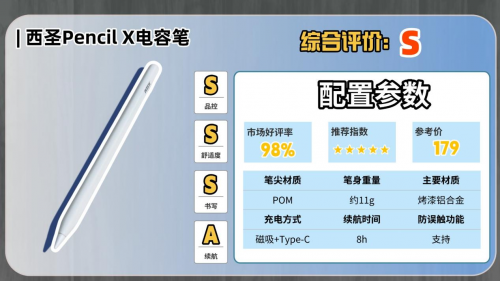 目前许多低价电容笔存在功能冗杂、书写精准度不足的问题,许多用户反映,长时间使用后容易出现延迟或误触现象,影响了创作的流畅性。而西圣这款电容笔凭借其卓越的性能、舒适的使用感受和流畅的书写体验,成为同价位电容笔中的佼佼者。