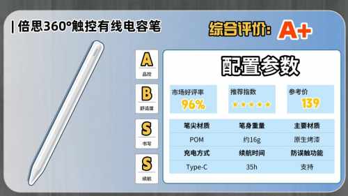 款式2:倍-思360°触控有线充电容笔