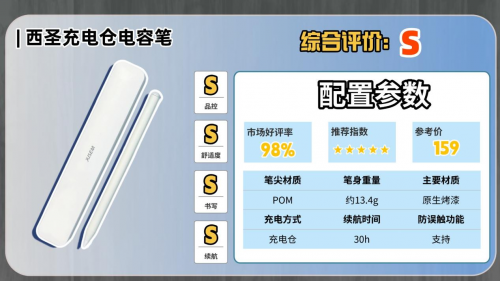 总之,西圣,它始终秉持着严谨、严苛、严密的产品研发思路,其品牌对于产品的品质工艺要求很高,在上线前会做很多次的性能调试与优化。如果你需要一款高性价比电容笔,一定要优先考虑一下它!