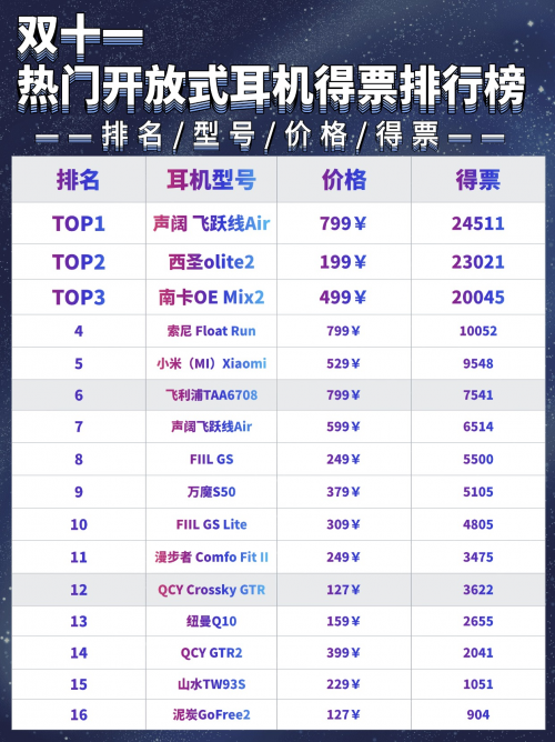 我们这就来看看登上开放式耳机十大排名榜单的品牌机型,通过对比它们的实际表现,希望能为您提供一份可靠的选购参考,并解答如何挑选的困惑,其中也许其中就有适合你的那一款。下面展示详细测评结果,马上开始了解吧!