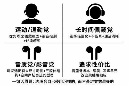 运动/通勤党:优先考虑佩戴稳固+漏音控制+环境感知;
