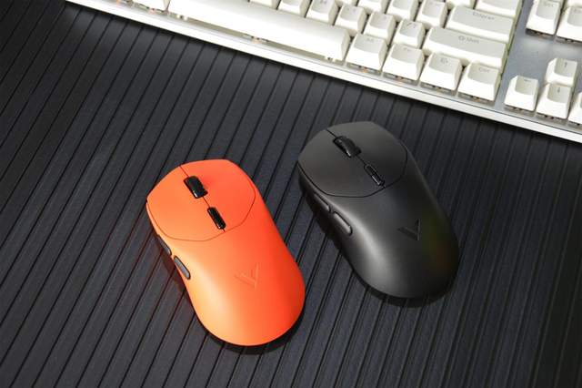 配色上,VT1二代系列共有皓月白、星空黑和焰影橙三种款式。其中,焰影橙特别漂亮,也特别适合电竞氛围,我最喜欢。并且VT1二代的皓月白、星空黑使用了类肤磨砂工艺,而VT1二代的焰影橙和VT1 MAX二代的表面则是加入了亲肤防滑涂层,更适合易出汗的电竞玩家,防滑设计减少游戏中的失误率。