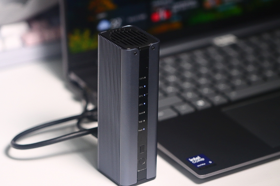 在尺寸上,产品本体比我想象的要小巧轻便,它130*45*37mm的三围大约相当于一个眼镜盒,净重仅为154克,铝合金结合亚克力的外壳材质不仅带来了良好的质感,也保证了轻量化,可以轻松放入电脑包或书包中,对于需要出门办公或频繁移动的用户来说,携带起来毫无负担。