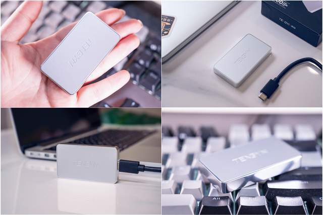 另外,随着技术的发展和进步,现在移动固态硬盘的尺寸也更加小巧,就拿腾隐P2000来说,它的重量只有30g,重量和半个鸡蛋差不多。机身也非常纤薄,不管是放在包里还是装在口袋里都毫无压力。传输性能方面就更不用说了,读取速度2100MB/s,传输一部2GB大小的视频文件只需要几秒钟,这速度确实会让U盘望尘莫及。再加上它高颜值的全金属外壳设计和多平台通用的兼容性,和U盘相比,它几乎是全方位的领先。