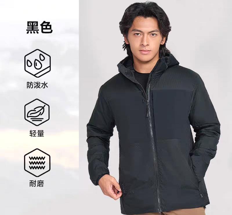 测试型号:60g金标蓄热棉服。面料材质为TORAY Airtastic™克轻高密面料。L号重量为450g左右,不算轻薄。使用场景多为徒步登山,中高海拔攀登,高山滑雪等,防泼水,耐磨防风透气。裁剪工艺特点:贴合亚洲人体身形的 3D 立体裁剪版型,造型简洁、运动灵活不显臃肿,依然配有YKK普通拉链。核心优势:1.toray防风雪面料,柔软亲肤。 2.兼具轻量保暖、防泼透气与弹力舒适性助力攀登者在风寒湿冷环境下,保持温暖舒适。3.金标P棉轻盈聚暖,无惧湿冷气候,动态保暖避免失温。4.超大帽檐可以兼顾雪帽。5.NIFCO@高品质扣具单手可操作,防钻风。