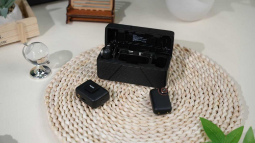 发射器重23克,配有背夹和磁吸片,可轻松固定在衣领或吸附在衣物上,佩戴舒适且稳固。接收器带有高分辨率OLED屏幕,参数显示清晰直观。四合一转接器设计,搭配多种接口线,可全面适配手机、相机、电脑等设备,即插即用。不过,充电盒体积相对较大,携带时可能会占用一定空间。