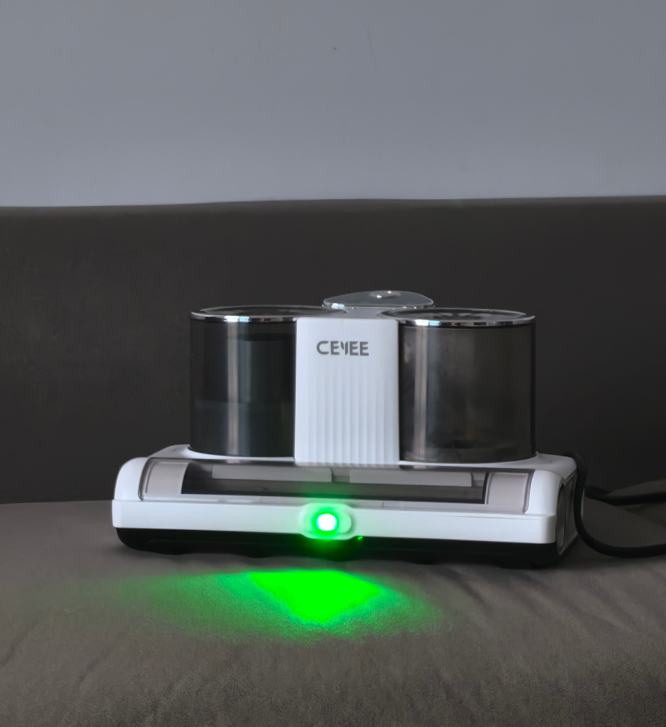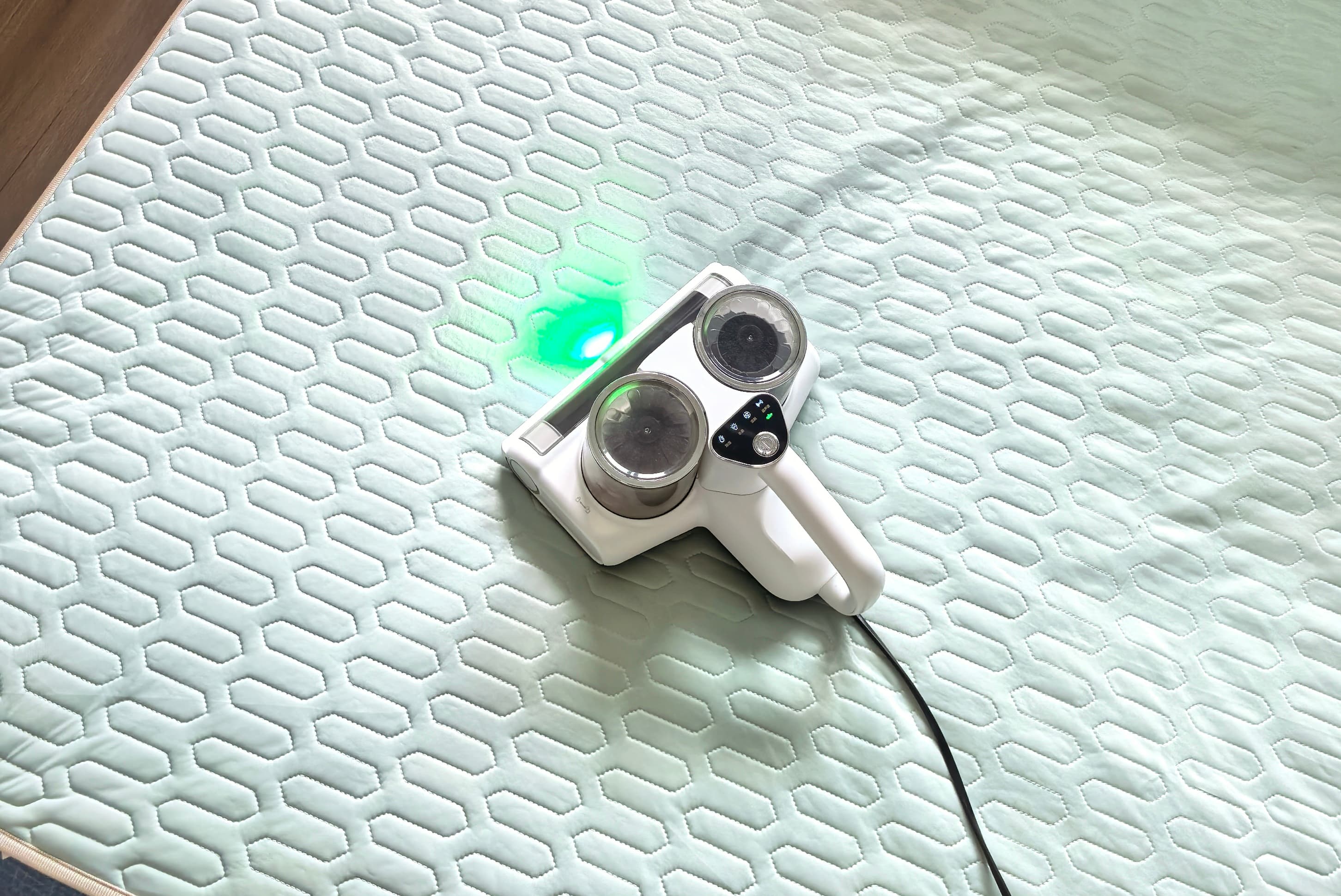 实测南方梅雨季,清洁后床垫表面温度达58℃,2小时后湿度从75%降至42%,触感蓬松干爽。AI智能尘螨感应系统则通过毫米波雷达实时监测尘螨浓度,屏显红色提示重点区域,绿色表示清洁达标。这种“热风除湿+紫外线灭活+超声波分解”的三重机制,从环境调控到生物灭杀形成闭环,让螨虫无处遁形。
