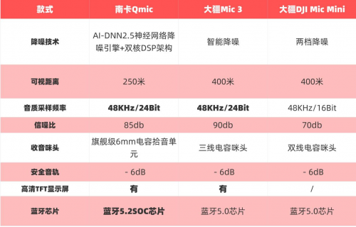 从我们的测评体验来看,南卡这款在收音、降噪效果上对比大疆这款Mic3并不落下风,在细节方面打磨的也很出色,性价比很突出。大疆Mic3这款的细节方面做的也很优秀,使用体验是不错的,mini mic这款的话在收音和降噪方面的话不及南卡这款,细节方面也有待加强。