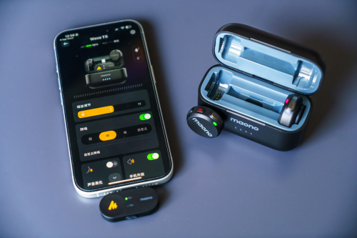 支持双发射器配对,双人访谈时收音同步性较好,但Maono Link APP的声音滤镜在实际使用中,“电台模式”人声会稍显失真,更适合轻度修饰。发射器单次9小时续航搭配充电盒总30小时,足够应付全天拍摄,但充电盒充电接口为Micro-USB,需额外携带线材,不如Type-C接口通用。操作时APP连接偶尔会出现延迟,需手动重启设备解决。