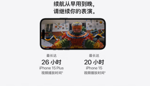 iPhone15 Plus的电池续航可以达到26小时的视频播放,iPhone15的电池续航也有20小时。用一天根本没问题,再也不用担心手机没电了。
