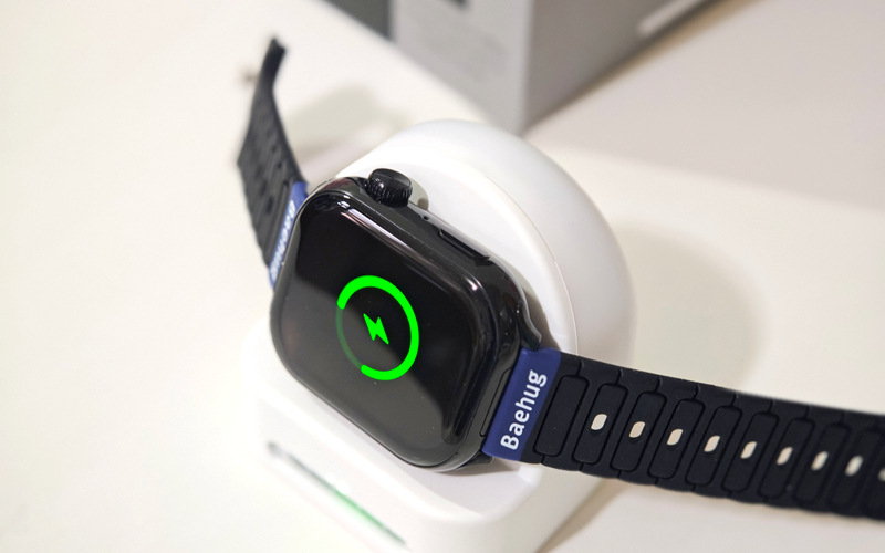 此外,配备的3合1便携充电座也是这款电话手表的一大亮点,充电座内置2800毫安锂电池,可以通过磁吸充电的方式能直接为手表充电3次,同时也可以为便携电池充电进行充电,同样充电次数可达3次。非常实用的配件,为设计师打call。