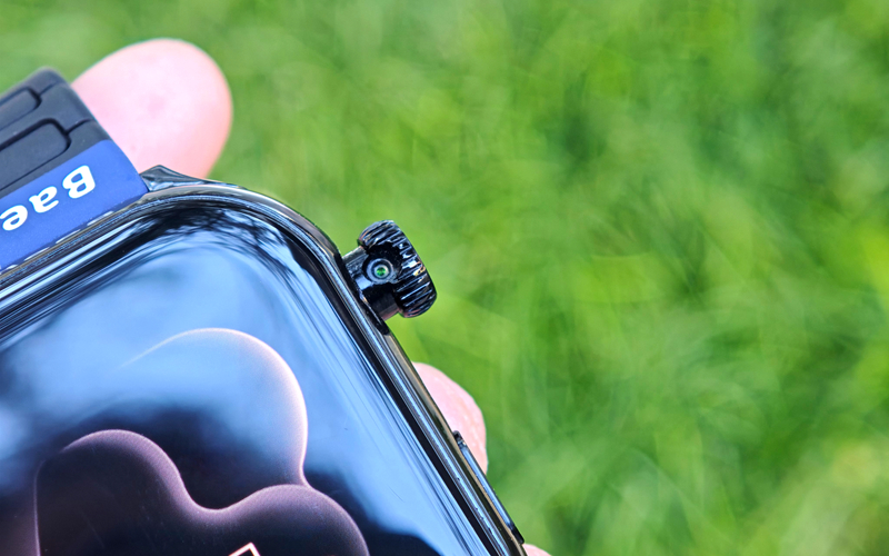 Baehug宝护光X8机身厚度为13mm,相较于市面上多数电话手表,这一厚度控制得相当不错的,在学生可接受的范围内。在其手表左侧则是摄像头和电源键设计,其中电源键集成多功能设计,可以实现返回上一页、关机、重启等功能。