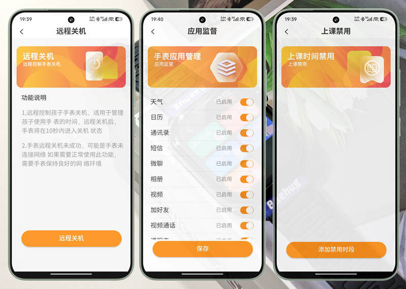 绝大多数的孩子,对智能设备的认知度和自我控制能力是很低,这也是很多家长最担心的问题。Baehug宝护光X8的守护功能可以很好的解决家长的烦恼,家长只需在自己的手机端安装西萌守护APP,然后按照提示完成手表绑定后,就可以对手表进行管理,比如远程关机、应用监督、上课禁用等功能操作,有效防止孩子过度沉迷于手表,避免干扰学习。