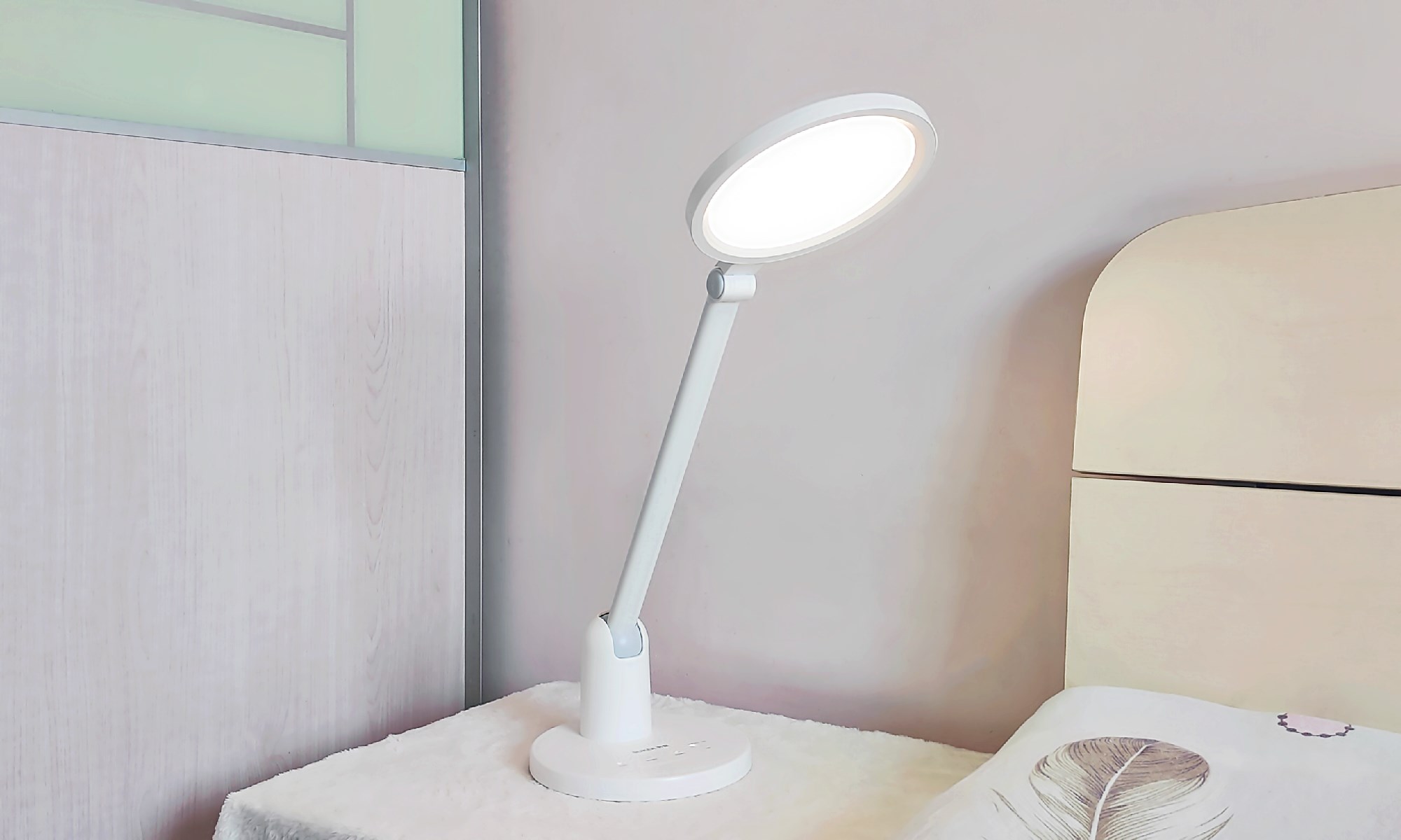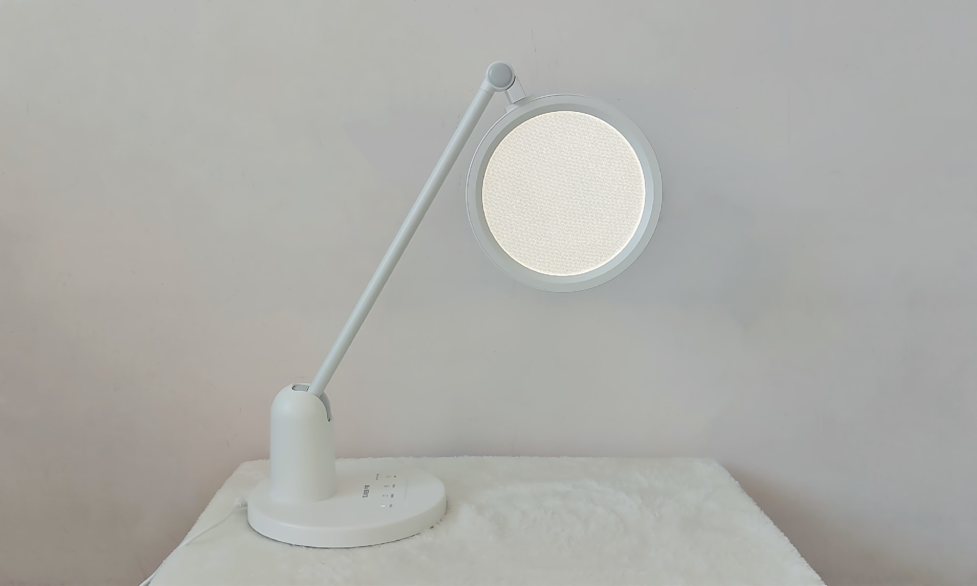 这台护眼台灯拥有一根长约305mm的活动灯臂,当灯盘保持水平位置时,与桌面的最高距离为400mm,照域宽广,桌面无暗角,提供一个极致舒适的照明环境。