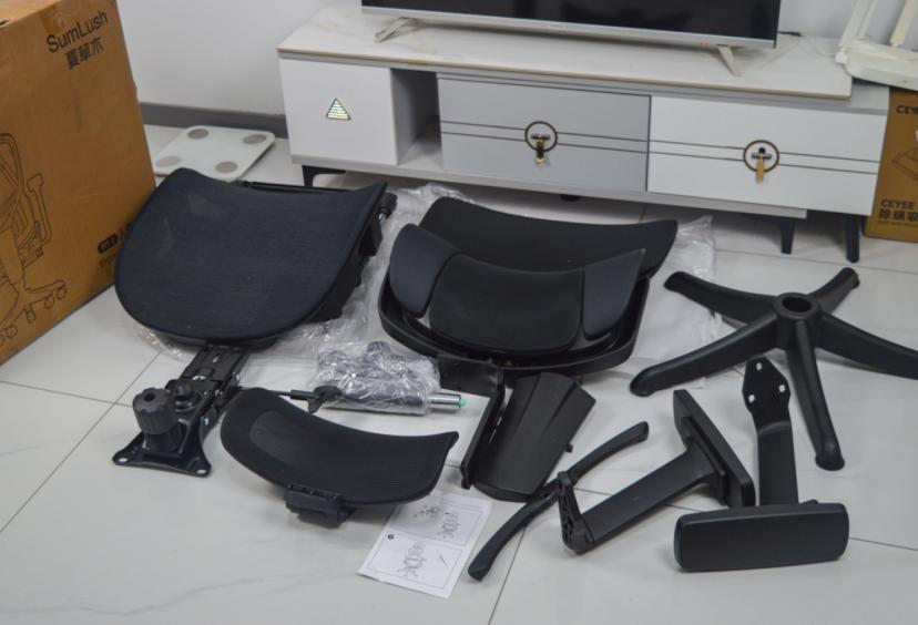 安装过程非常简单。步骤基本上是对着图示傻瓜式完成,先将五个万向轮按压式装入五星椅脚,这个过程不需要任何工具,只需用力下压直到听到"咔嗒"声即可。所有孔位精准,螺丝分包明确,这份在细节上的用心,夏草木从一代延续到了二代 ,接着将气压棒插入椅脚中心孔,再把座垫框架套在气压棒上。最后安装扶手和靠背,用附赠的内六角扳手拧紧几处螺丝即可。整个组装过程仅花费约二十分钟,比我想象中要快捷许多,即使是像我这样不太擅长DIY的人也能轻松完成。对于新用户来说也绝对是无脑友好的。
