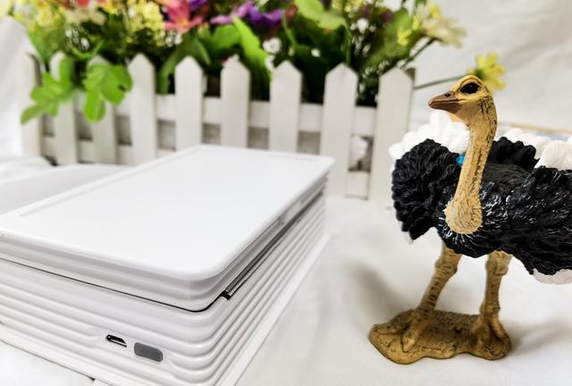 整体上看喵喵机MAX打印机像一本小的新华字典,表面还进行了磨砂处理,拿在手里更加舒适而且更加有利于防滑。整个重量也只有480g左右,长宽高尺寸差别分别是150mm、100mm、45mm,是不是随手就可以拿着,放在书包也不占位置,平常出门的话也可以随身携带着,以备不时之需,非常的便捷。