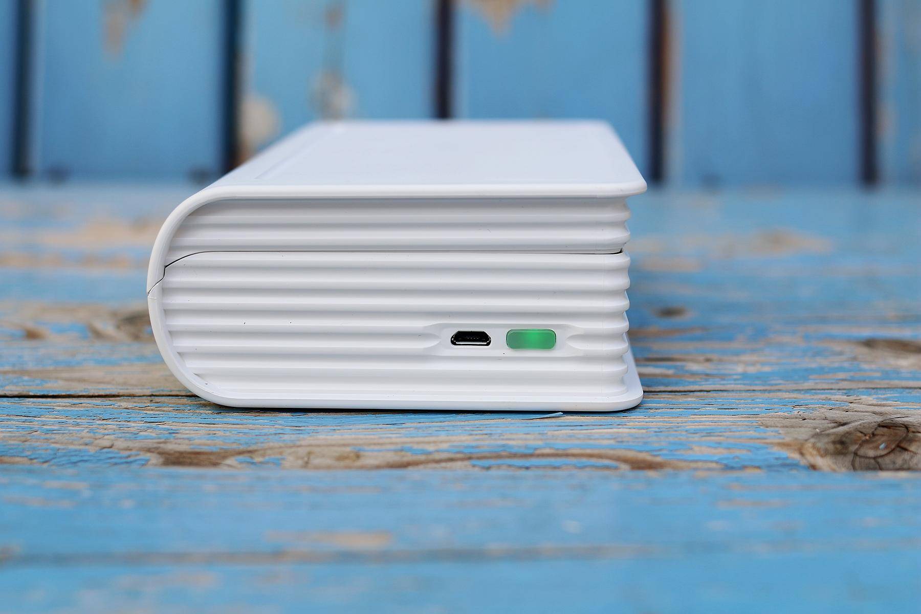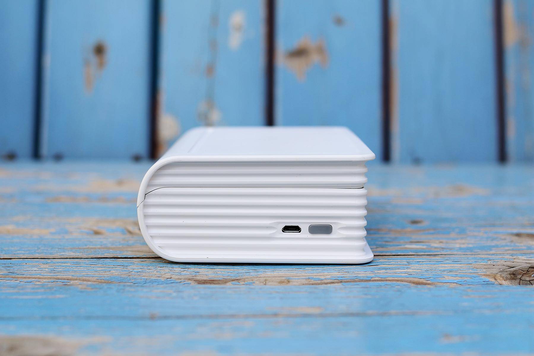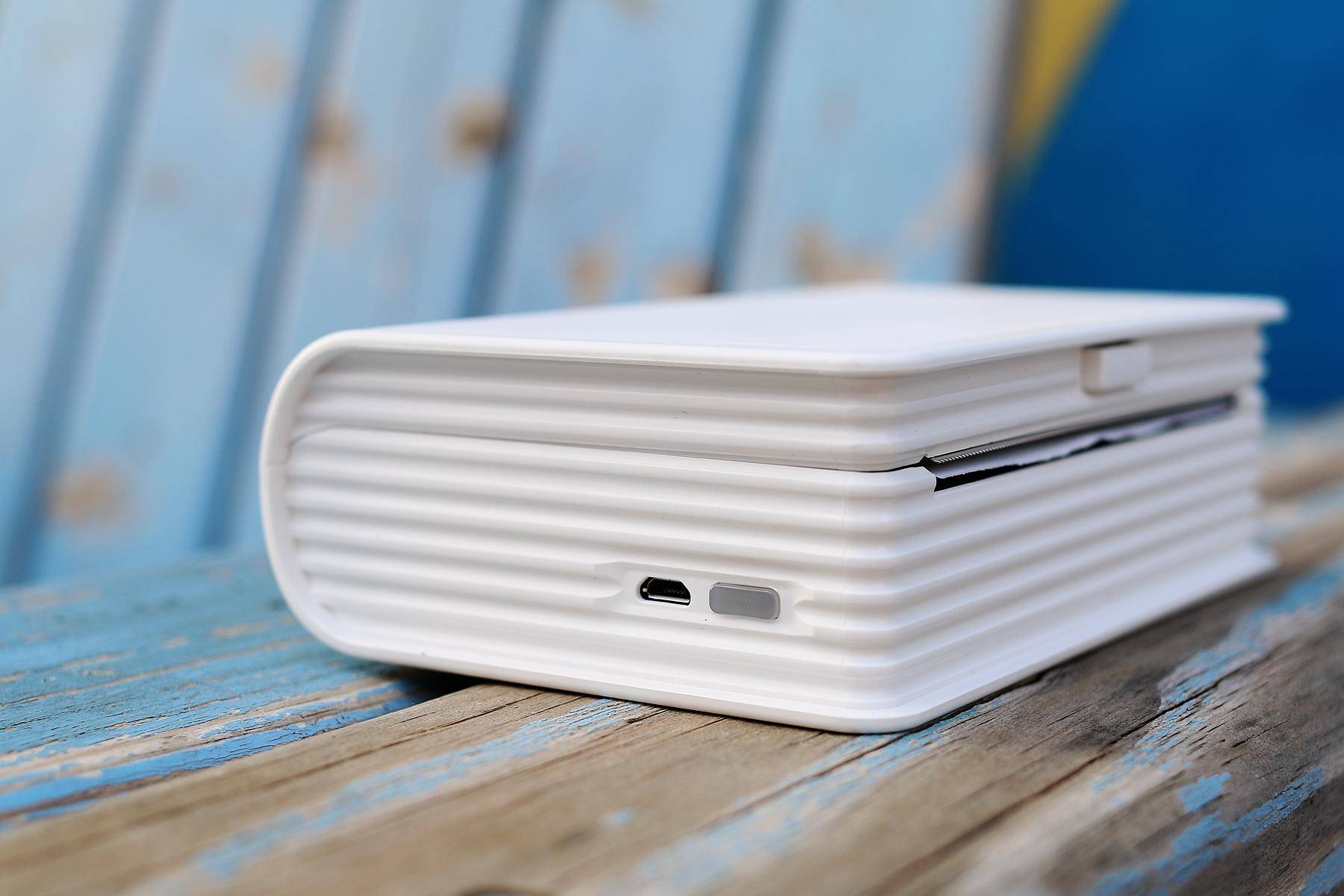 在喵喵机C1便携打印机的前方布置有一枚电源键,长按电源键就可以开机,原来电源键还内置有指示灯功能,怪不得采用了半透明材质。其左侧是Micro USB充电接口。喵喵机C1便携打印机的续航时间还是比较长的,对于充电接口这里就不过于苛刻了。
