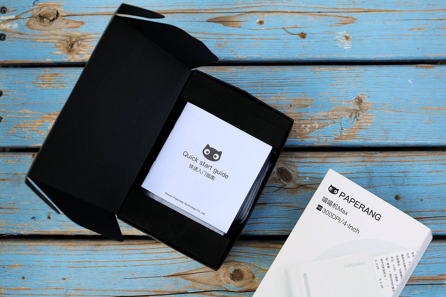 首先,我们来看一下喵喵机C1便携打印机的包装。包装正面印制有打印机的外观图片,这个设计应该是为了体现出它的Max特性,所以只展现了它的局部外观。喵喵机Max支持300DPI高清打印,耗材规格为4英才。