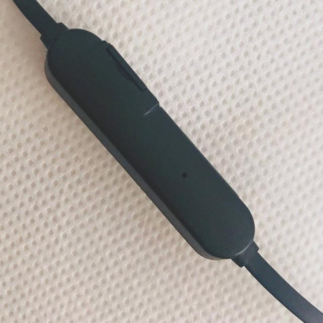 麦克风设置在控制部分的背面,那个黑色的小圆点,就是这款耳机在打电话的时候的收音设备,可以让我们把它放在嘴边提升接打电话的时候的声音传输效果