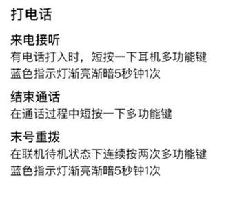 而在接打电话的时候,只需要短按即可以接听,同样在想挂电话的时候短按则可以结束通话。在音乐播放的时候,短按则可以播放,再次短按则可以暂停音乐。在联机状态下快速短按两次可以自动重播。而在接听电话的状态中,长按两秒钟,则可以直接挂断电话