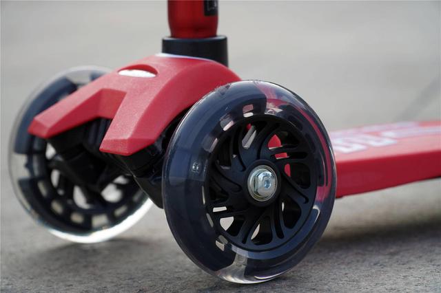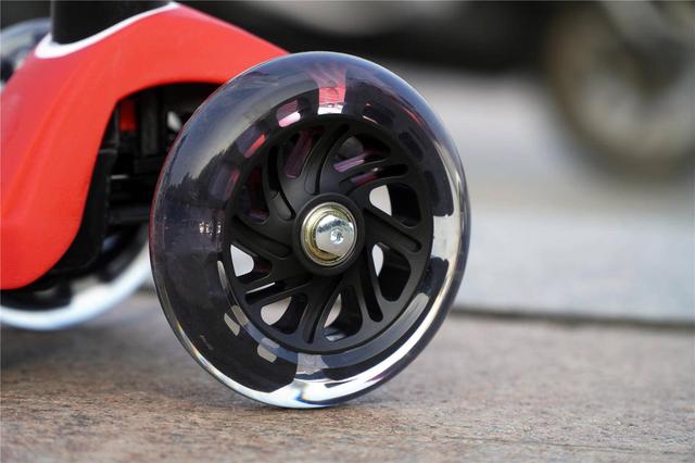 滑板车省不省力,滑轮组是非常重要的。有些产品蹬一下可以转动十几圈,而有些产品蹬一下就只能转个两三圈,这其中的差别可就大了去了。不仅体力消耗更大,运动所获得的乐趣也完全不同,参加竞赛的话更是会输的惨不忍睹。