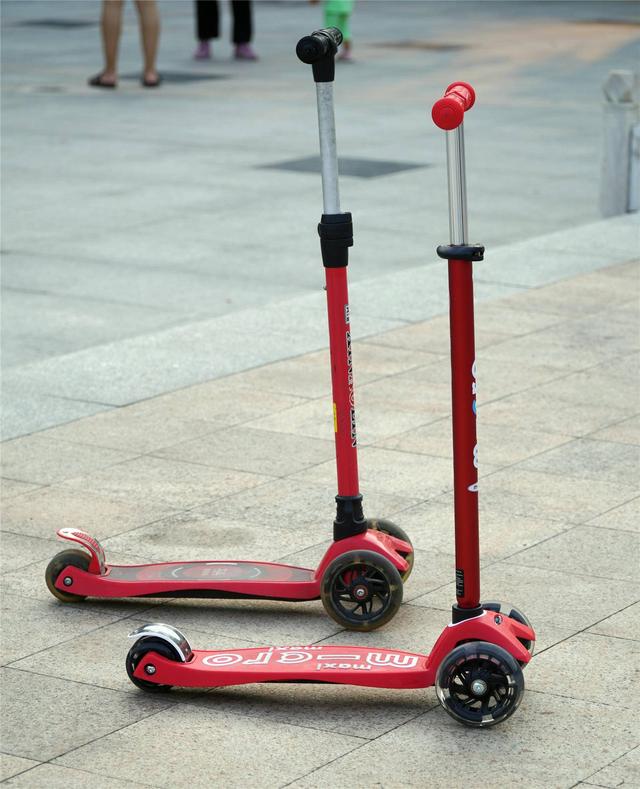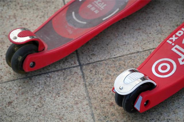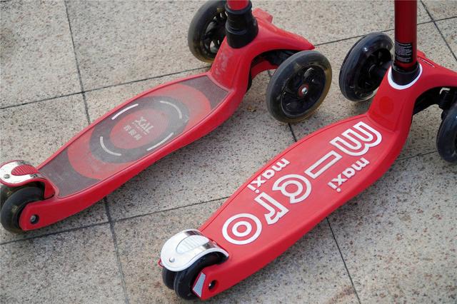 和女儿一起玩的小伙伴也有一台滑板车,我索性借来做个小小的对比,这样也能让大家更好的了解m-cro迈古迷嬉滑板车的优秀。