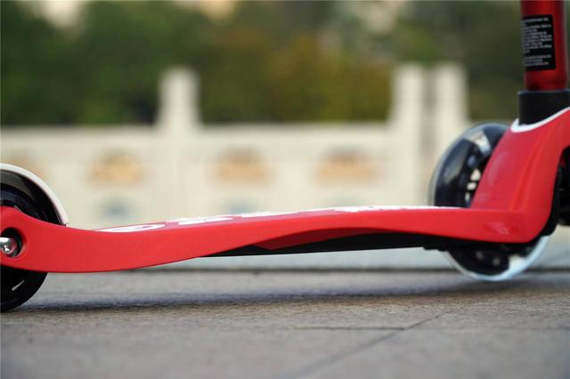 在踏板的做工上,另一款产品没有采用m-cro迈古迷嬉滑板车的3D浮雕防滑设计,而是简单的在上面铺了一层防滑垫,长时间的使用下来磨损不少,无论是看起来还是用起来相比较m-cro迈古迷嬉滑板车都要差一点。