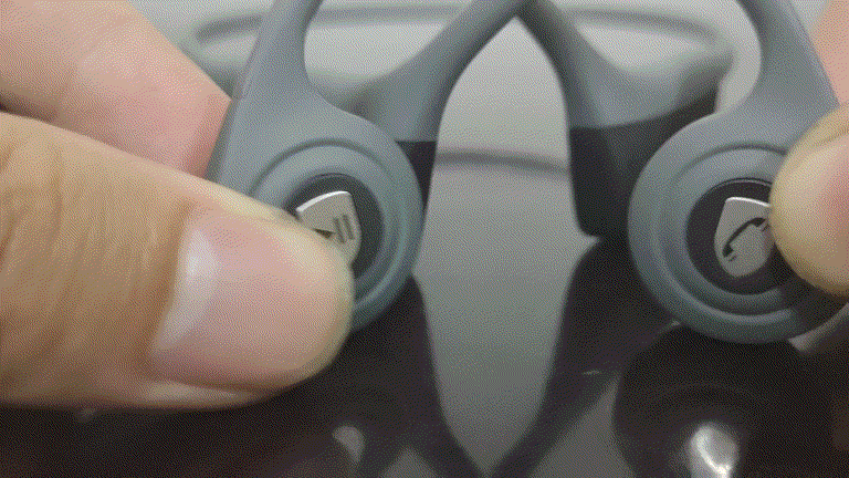 两个发声单元的外侧是两个控制键,其中一个为音乐暂停与播放按钮,另一个则为多功能通话键。