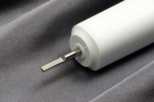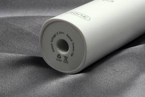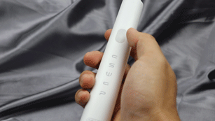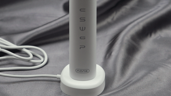 再来看到南卡Shiny磁悬浮声波电动牙刷的主机微倾角的圆柱状造型,为现今较为常见的外形设计。