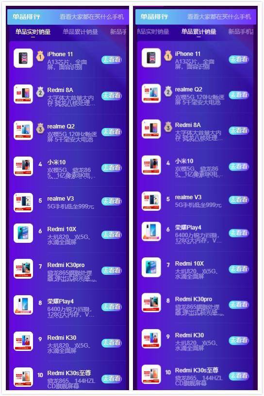 而值得注意的是,虽然荣耀手机的芯片受到了打压,无法大面积供货,但是荣耀还是不负众望凭借一款“荣耀Play4”夺得了单品累计销量榜单的第六名,表现依然很出色;剩下就是两款千元和百元级的realme品牌手机,以及iPhone 11。iPhone 12发布,iPhone 11成为了iPhone的真香机,看着还是有点意思,对于苹果而言这或许是他们意料之中的事,这也说明了iPhone 12确实也并没有想象中那么火。