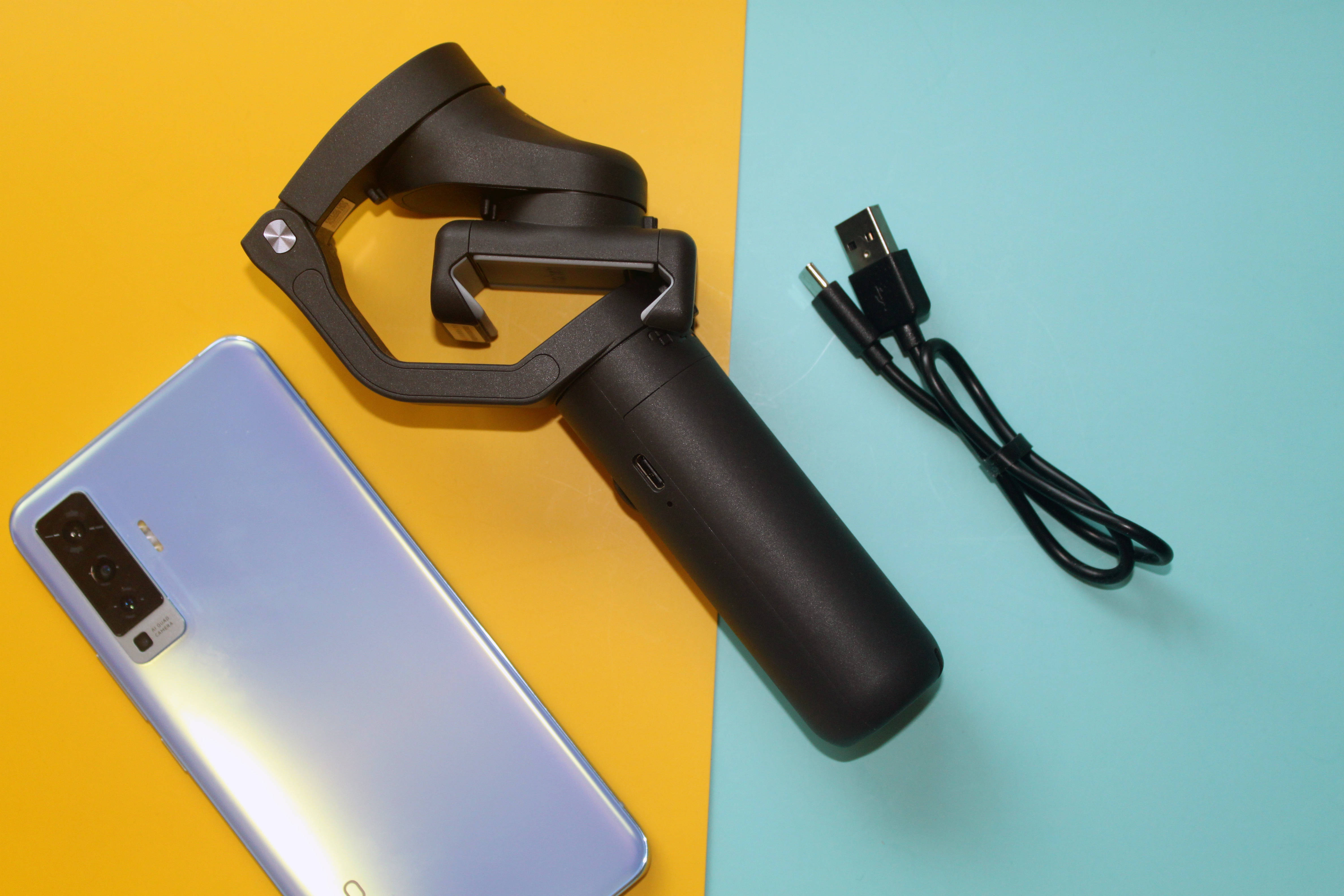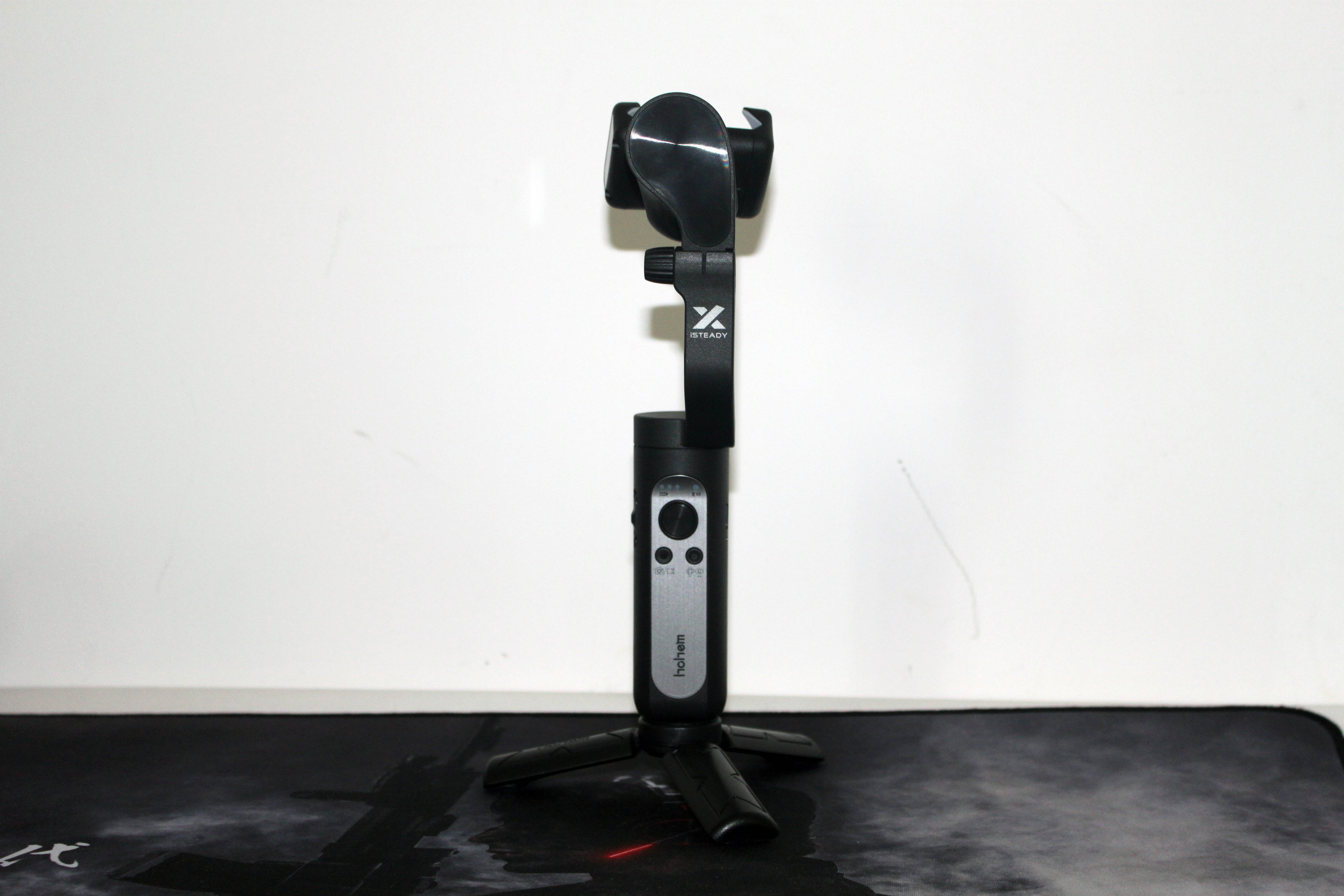 浩瀚iSteady X稳定器还搭配了一个迷你的三脚架,三脚架的张开角度可以自由调节,可以让稳定器作为手机支架使用,实现了稳定器的一机两用。