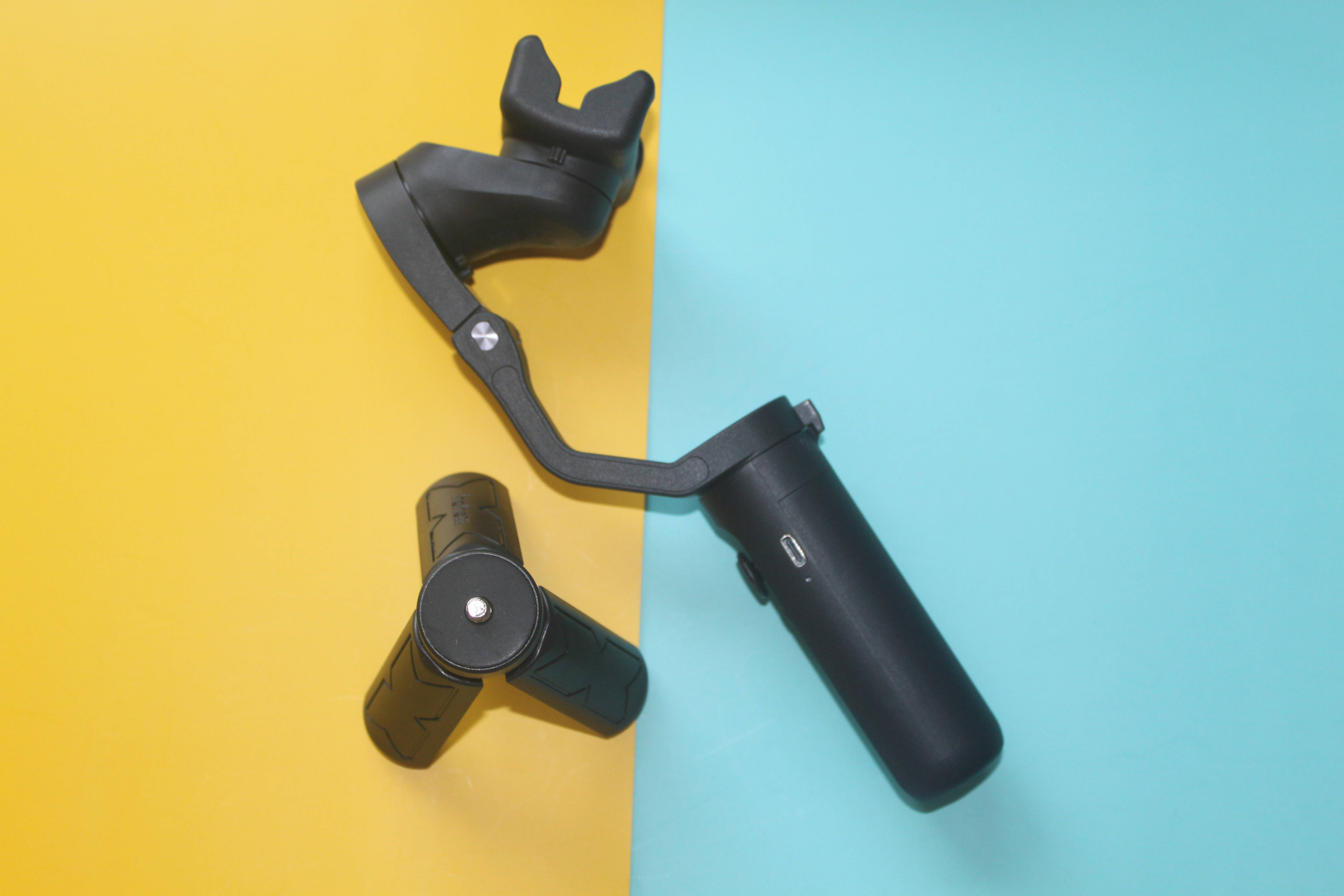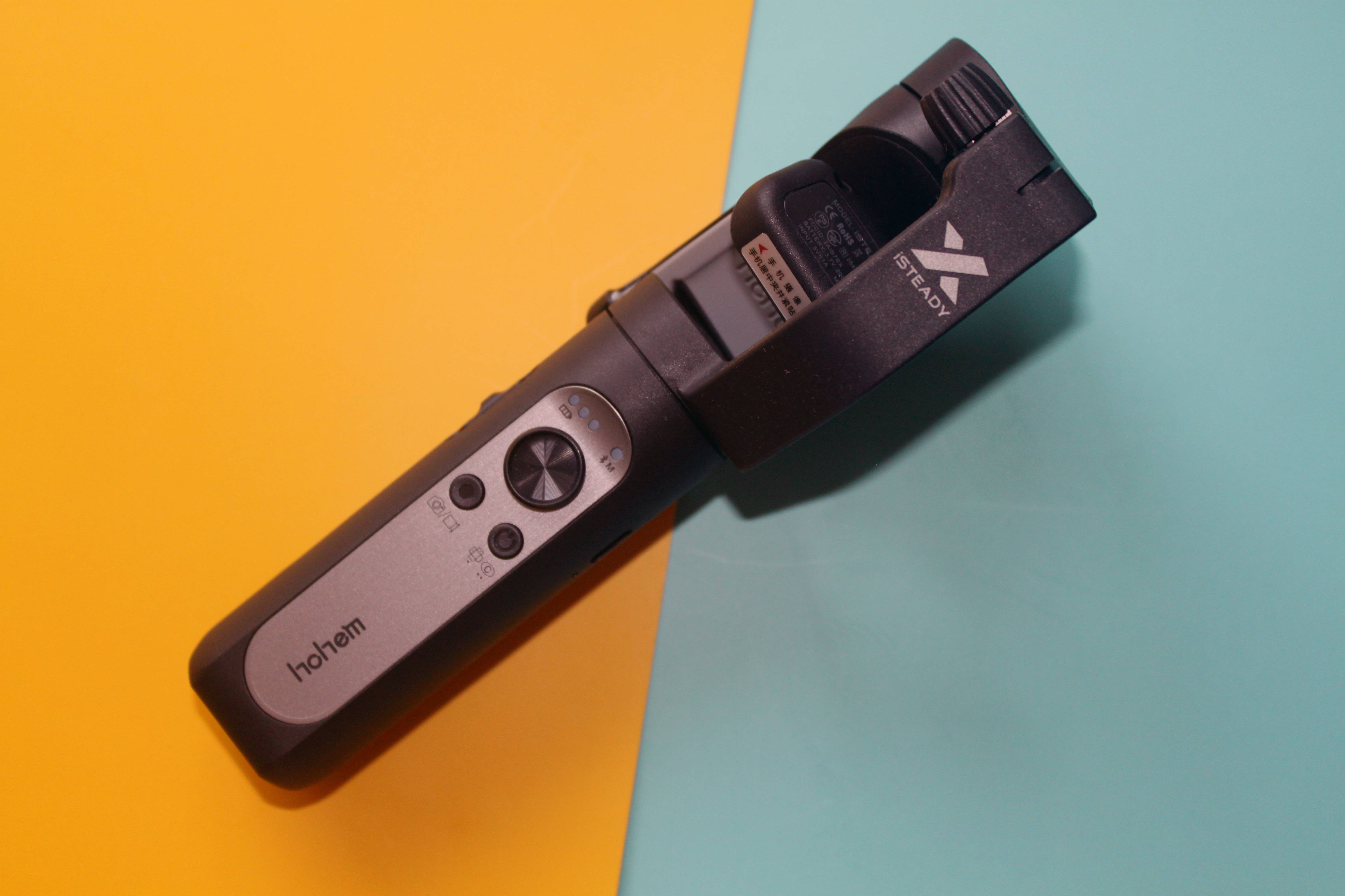 浩瀚iSteady X稳定器机身通体采用了黑色的配色,稳定器采用了折叠的设计,占据的空间比较小,稳定器采用了三轴稳定设计,让拍摄角度更加宽广。