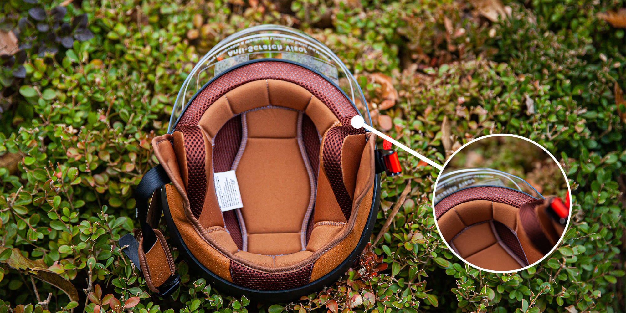 骑士复古头盔采用了三层设计结构,头盔的外壳是喷涂了金属磨砂工艺的高强度ABS工程塑料,提供优异的抗冲击和耐穿透的性能;减震层采用的是高密度的EPS,这玩意就是有些车企前后防撞里面填充的那个材料,在撞击时吸能用的;最里面一层就是海绵,让佩戴的时候更加的舒适。