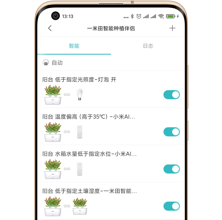 最有意思的是还能实现智能联动,比如喊小爱同学控制浇水。当然他自身也能作为一个条件使用,比如亮度不够开灯,水箱水少了让小爱同学播放一段文字通知我等等。