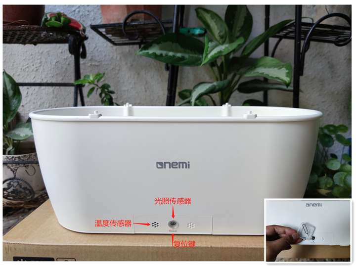但是我觉得有三个问题需要解决,一个是电源问题,让这个种植伴侣很受限制。第二个是防水问题,毕竟种植总需要浇水,不防水就会有触电风险,但是放在花架上应该能解决这个问题;第三是虽然我的两个阳台都有电源,但是机器的电源线太短了,放不到地上,只能放到花架上才行。