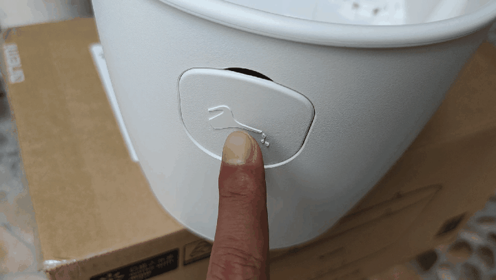 右侧面是一个注水口,轻轻一按便会打开。因为机器自身是不防水的,避免出现问题加水时需要格外注意,使用像烧杯一样形状的东西最好,使用与机器配套的量杯更为合适。
