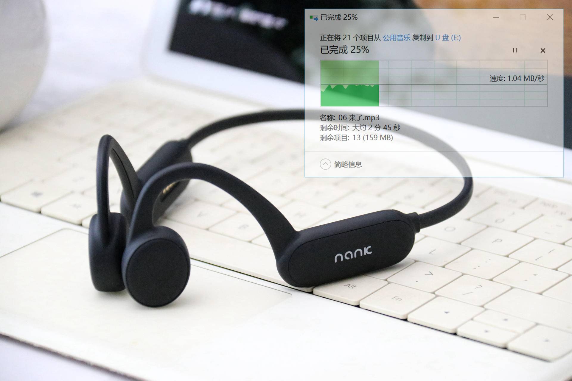 南卡NANK骨传导耳机Runner Pro的最大亮点就是其内置8G内存,自带MP3播放,即使是不连接手机等设备,也可以用来播放音乐。值得一提的是,日常的音乐格式,比如MP3、WAV、FLAC等,耳机都是支持的。在使用内存模式前,需要将耳机通过充电线连接电脑,把下载好的音乐复制到耳机自带内存中。南卡NANK骨传导耳机Runner Pro可存储上千首音乐,完全够用了。总之,南卡NANK骨传导耳机Runner Pro一共支持两种使用模式,即内存模式和蓝牙模式,两种模式可一键切换,即双击电源键即可。