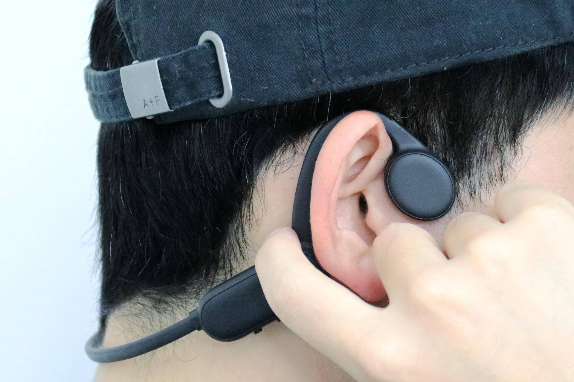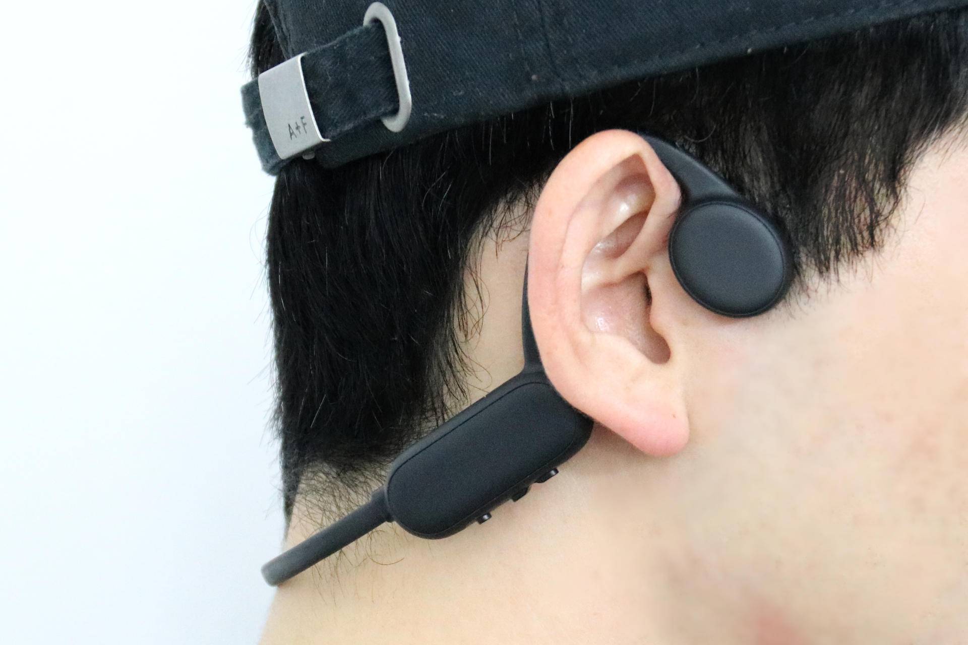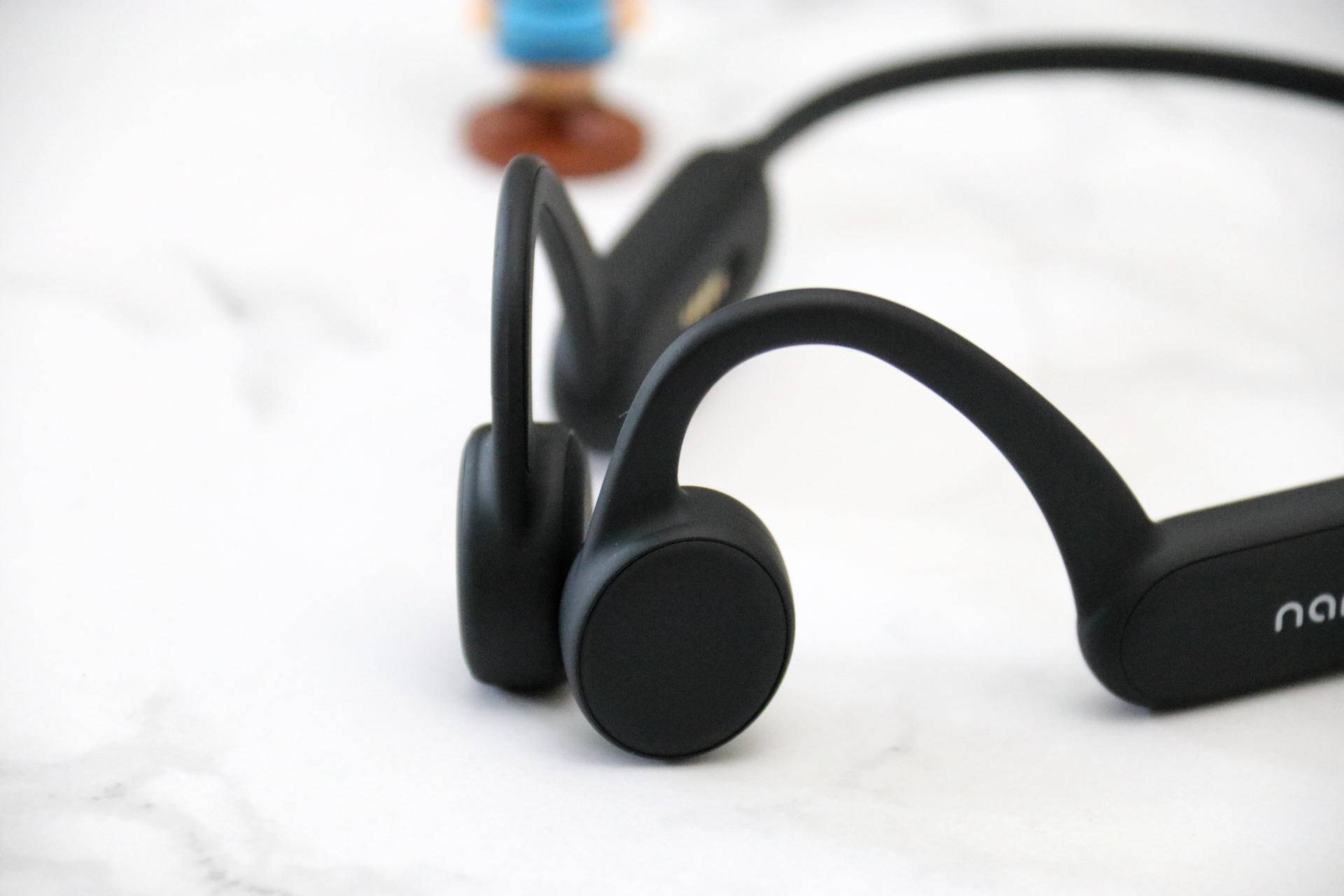 南卡NANK骨传导耳机Runner Pro的挂耳处符合人体工学设计,佩戴时直接挂在耳上即可。耳机的弯曲弧度可在一定程度上提升佩戴舒适度和稳定性。