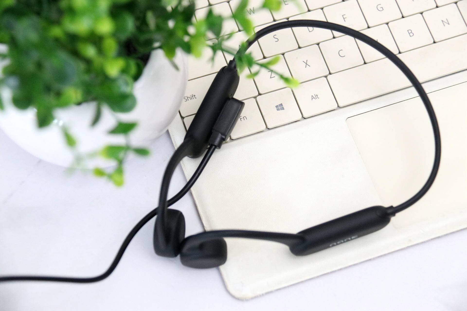 充电线轻轻靠近耳机的充电口,两者即可吸附在一起,开启充电状态。当为耳机充电时,充电口侧面的指示灯呈现红灯呼吸闪,直到电量充满,保持蓝灯常亮。南卡NANK骨传导耳机Runner Pro的电池容量为230mAh,待机时间可达240小时。