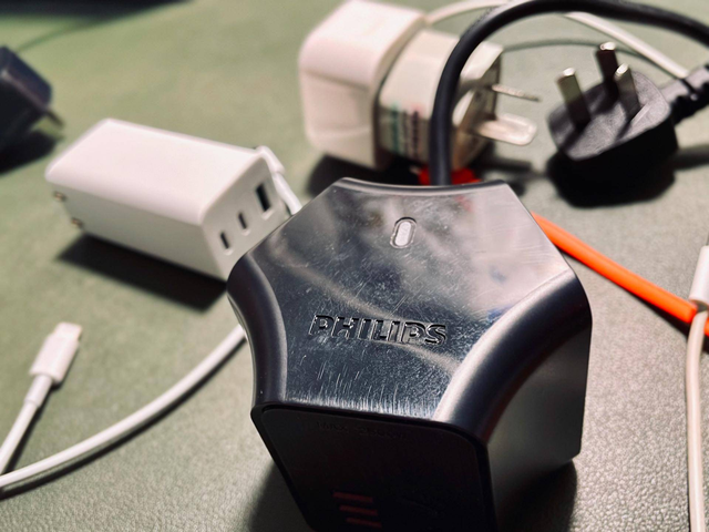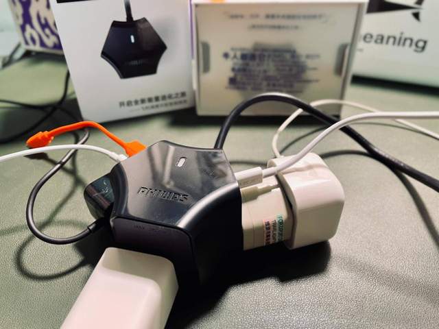 插座正面看的话,有一个指示灯,显示整个插座的工作状态以及飞利浦的logo。整个插座有三个面是有插孔的,为了方便说明,我分为ABC面进行说明,最多支持6个设备同时充电,这对于我的日常需求来讲,我觉得完全足够了。
